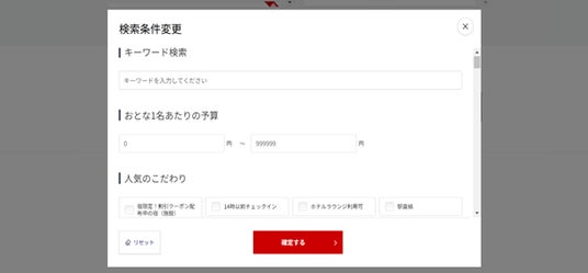 国内航空券と多種多様な宿泊プランの組み合わせや、観光地のチケットやレンタカー、豊富なオプショナルプランの追加など、たくさんの選択肢の中からお客さま一人一人のご要望を満たす旅程を、より簡単に、よりスピーディにお探しいただけるよう、デザインのリニューアルに加え、多くの新機能を実装しました。これまでの「旅行を予約する手間」が「旅行を予約する楽しみ」に変わる体験をご提供します。