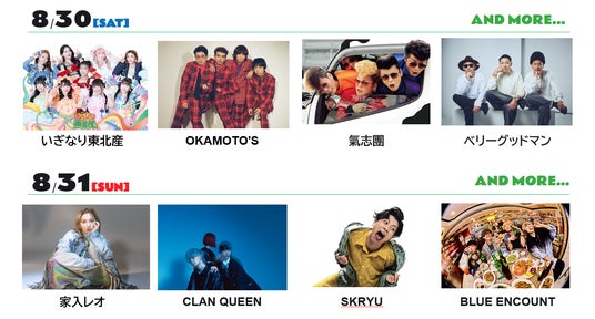 ・家入レオ ・いぎなり東北産 ・OKAMOTO'S (オカモトズ) ・氣志團