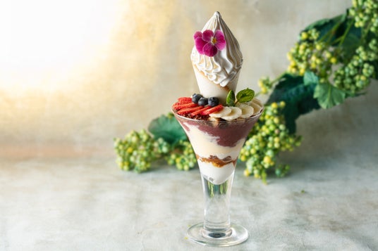 5月より提供する『アサイーボウルのパフェ』はアサイーの魅力をぎゅっと閉じ込めた、初夏限定の新感覚スイーツです。甘酸っぱいアサイーボウルに、濃厚なクレミアソフトクリームがラングドシャコーンごと取り入れており、パフェという新たなかたちでお楽しみいただけます。グラスの中にまるで一輪の花が咲いたような、遊び心あふれるビジュアルも魅力の一つで、目にした瞬間に気分が華やぐ一品です。
