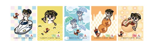 ・絵柄:「新幹線」「ラーメン」「傘」「お団子」「たこ焼き」全5種