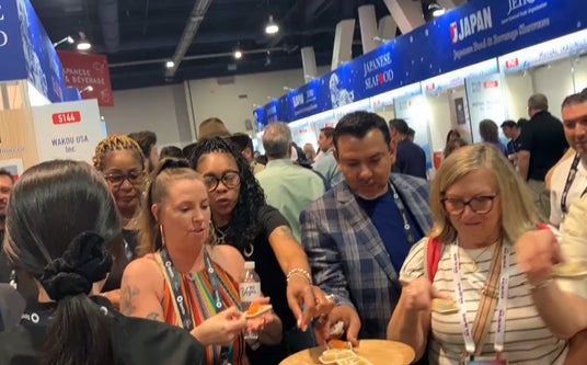 3月25日(火)から26日(水)にラスベガスで開催された「Bar&Restaurant Expo」では、アメリカ市場への本格出展として、現地飲食業界関係者や食品商社・問屋との接点を多数得ることができました。共同出展したのは、銀だこUSAをはじめとする日系企業。中でも寿司に対する注目度は高く、会場ではカリフォルニアロールとサーモンの握り寿司を各1,000個ずつ提供。開始からわずか4~5時間で品切れし、リピーターも多数現れるなど、冷凍とは思えない品質の高さが評価されました。