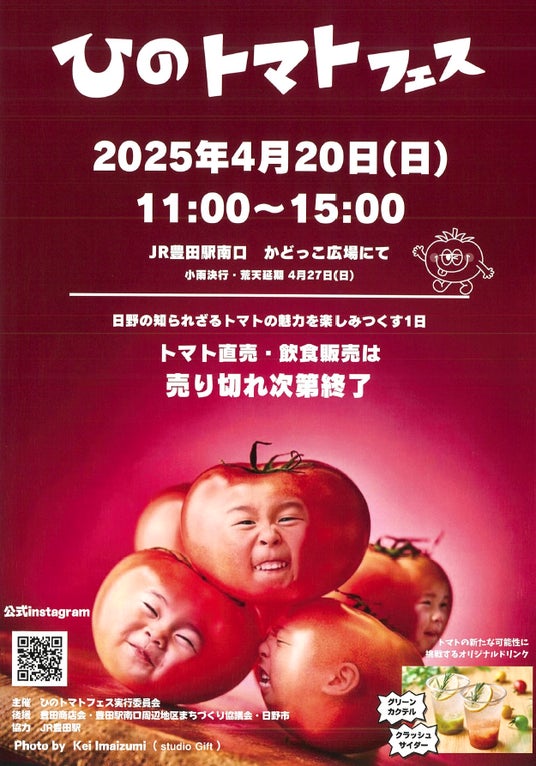 4月20日(日)に、JR豊田駅南口のかどっこ広場にて、2025年「ひのトマトフェス」が開催されます。