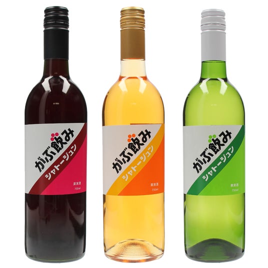 「日本ワインを気軽に飲めるスタイルを追求」した、「がぶ飲みシャトージュン」。初期のデザインをブラッシュアップした装いで、赤白と、新たにオレンジワインを加えた全3種で展開いたします。