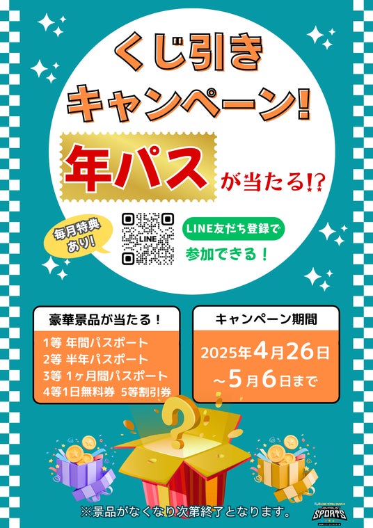 この度「北九州イノベーションセンター」を運営するGZキャピタル株式会社(本社:福岡県北九州市、社長執行役員:大屋 喬史)は、スポーツ系エンタメ施設「JOYPOLIS SPORTS 北九州イノベーションセンター店(以下、JOYPOLIS SPORTS)」にて、2025年4月26日(土)~5月6日(火)のゴールデンウィーク期間限定でハズレなしのくじ引きキャンペーンを実施いたします。