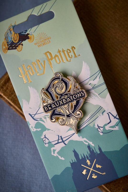ボーバトンの校章がピンバッチに。フランスの魔法学校らしいエレガントなデザインで、ホグワーツとは違った雰囲気を楽しめます。