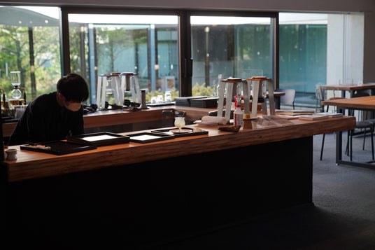 雲上茶寮は木々に囲まれたミュージアムの庭や館内の坪庭を眺めることができるゾーンに位置し、