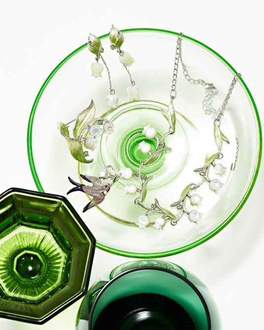 すずらんネックレス¥39,600、ツバメブローチ¥19,800、すずらんブローチ¥22,000、すずらんピアス/イヤリング¥20,900