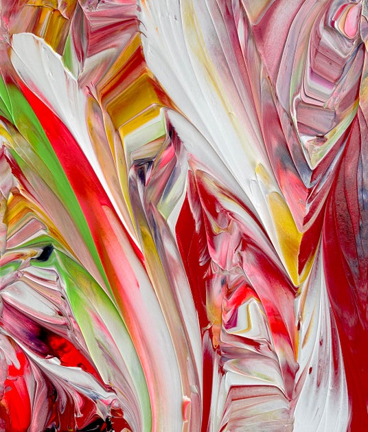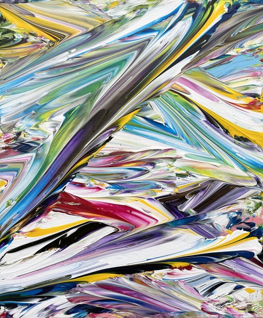 絵画表現の可能性をテーマに、鮮やかな色彩の抽象絵画を描く。