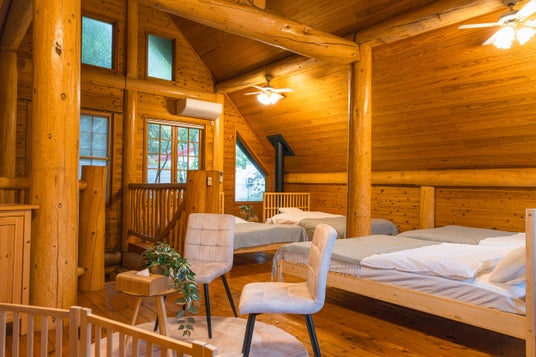 コテージ木の温もりを感じるコテージは、最大8名まで宿泊可能な「KUUSI」と、ペット同伴可能な「PUITA」の2タイプがあります。どちらも浴室・トイレ・洗面・冷暖房が完備されており、快適な滞在が可能です。「KUUSI」にはプロジェクターやテレビゲームが備え付けられており、大人数での滞在に最適です。「PUITA」では、薪ストーブやプライベート温泉を楽しむことができます。