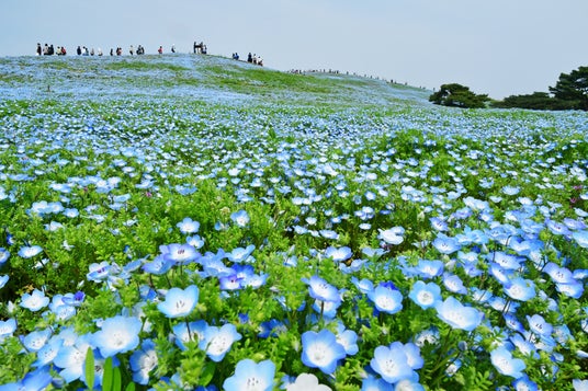 国営ひたち海浜公園の「みはらしの丘」では、約530万本のネモフィラが4月19日に7分咲きとなり、見頃を迎えます。今年は4月上旬の気温が低く日照時間も少なかったことから、平年より7日遅れての見頃となりました。ピークは平年より6日遅い4月24日頃と予想しており、その後、5月1日頃まで青一面の景色をご覧いただけそうです。ピークを過ぎたあとも、5月9日頃までは花数が比較的多い状態でお楽しみいただける見込みです。