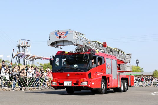 ■消防はしご車搭乗体験小学1年生以上の方限定ではしご車に乗って、約10mの高さまで上昇