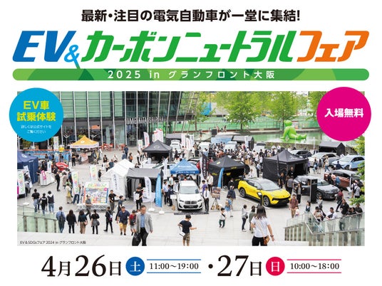 ■名 称:EV&カーボンニュートラルフェア2025 inグランフロント大阪 うめきた広場■日 時:2025年4月26日(土)・27日(日)