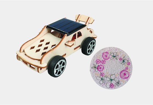 - ソーラーカーの製作とシードペーパーを利用した「コースター」に絵付けをする体験コーナーもあり。持ち帰ることができ、大人から子供まで楽しめる(数量限定)