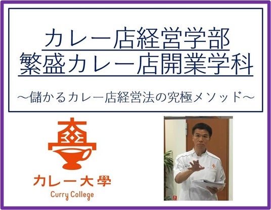 通常は顧問先しか教えていない成功メソッドですが、カレー大學の卒業生がカレー飲食ビジネスで成功すべく、余すことなく公開し伝授するのが本講座となります。