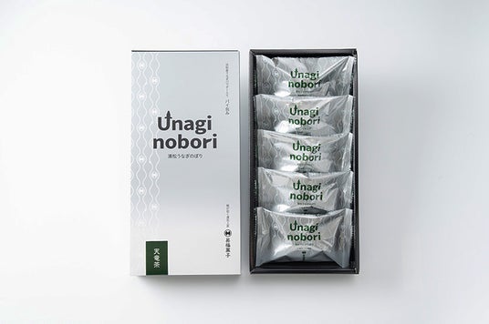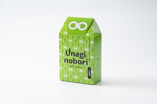 浜松は、自然環境と機械工業が盛んな地域、観光だけではなく、ビジネスマンの利用も多い地域。そのため、主要ターゲットは若手ビジネスマン。 頑張る人に応援を込めて、ゲン担ぎの語呂合わせ〈濱松うなぎのぼり〉と命名しました。 土産の新たな価値を探求し、うなぎのもつイメージ(パワフル、しなやかさ)と出世の街(浜松)に相応しいブランドデザインに仕上げています。