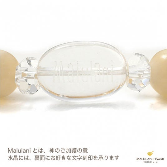 水晶には、ハワイ語で「神に護られた」という意味を持つ「malulani」と刻印。 持つ人に「神のご加護がありますように」との祈りをのせています。