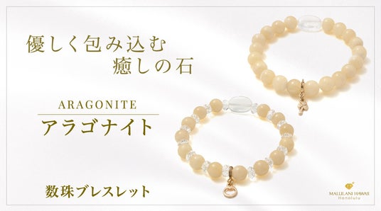 ハワイ発祥の天然石アクセサリーブランド「マルラニハワイ」より、心をそっと癒してくれるパワーストーン「アラゴナイト」を使用した数珠ブレスレットを発売開始いたしました。