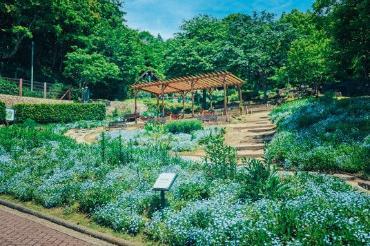 山上のリゾート「神戸布引ハーブ園」のネモフィラ畑