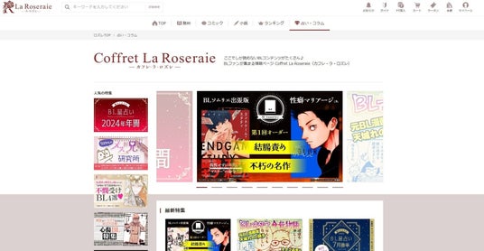 BL情報ページ Coffret la Roseraie(カフレ・ラ・ロズレ)では、 ここでしか読めないBLコンテンツを公開中です!