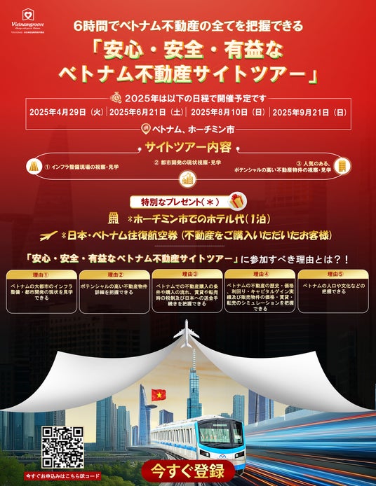 Property Access株式会社との提携先である株式会社ベトナムグルーブ不動産 (以下、ベトナムグルーブ不動産)は、2025年もホーチミン市を舞台にした現地視察プログラム「安心・安全・有益なベトナム不動産サイトツアー」を開催します。