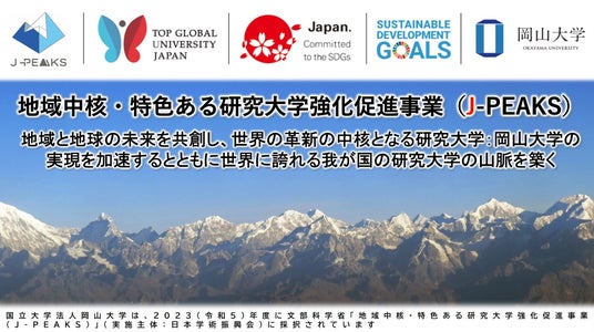 ・【岡山大学】文部科学省「地域中核・特色ある研究大学強化促進事業(J-PEAKS)」に採択~地域と地球の未来を共創し、世界の革新の中核となる研究大学:岡山大学の実現を加速とともに世界に誇れる我が国の研究大学の山脈を築く~