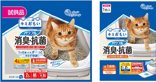 消臭効果4倍※2!新商品『キミおもい パワフル消臭・抗菌 システムトイレ用ネコ砂』、『キミおもい パワフル消臭・抗菌 システムトイレ用シート』をプレゼント!