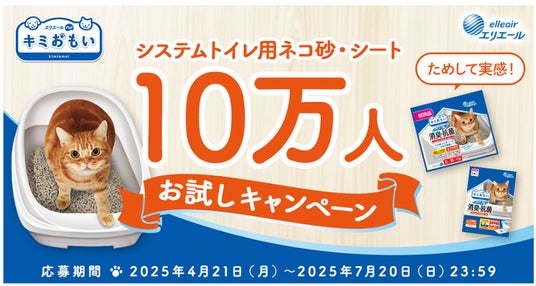 ネコちゃんのトイレのニオイにお悩みのペットオーナーを応援!「キミおもい システムトイレ用ネコ砂・シート 10万人※1 お試しキャンペーン」2025年4月21日(月)~7月20日(日)実施