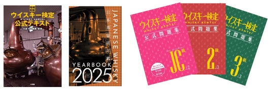 ウイスキーの定義や原料といった基本に始まり、製造工程、世界5大ウイスキーの歴史や蒸留所の紹介など、ウイスキーの基本をあますところなく説明している「増補新版 ウイスキー検定公式テキスト」は、試験対策のみならずウイスキーファン必携の一冊です。また、ジャパニーズクラフトウイスキー(JC)級の公式テキスト「ジャパニーズウイスキーイヤーブック2025」では、日本国内の蒸留所約124ヵ所を徹底紹介、その土地と蒸留所の個性、設備、発売ボトルなどのほか、ビジターセンターや見学ツアーなどの情報も満載でウイスキーツーリズムにも大活躍します。
