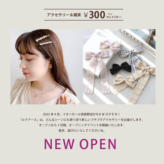 4/25(金)330円(税込)からのプチプラアクセサリーブランド「LUNA EARTH」イオンモール筑紫野にオープン