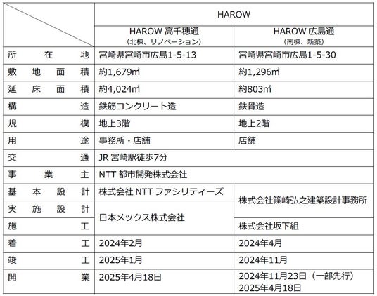 ※1 「HAROW」とは、2024年11月23日(土)に一部先行開業した「HAROW広島通(宮崎市広島一丁目5-30)」および、2025年4月18日(金)に開業した「HAROW高千穂通(宮崎市広島一丁目5-13)」の総称です。