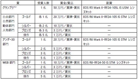 ※1.グランプリ選考対象は、自由部門、自然部門、動体部門、人物部門、アンダー30部門。