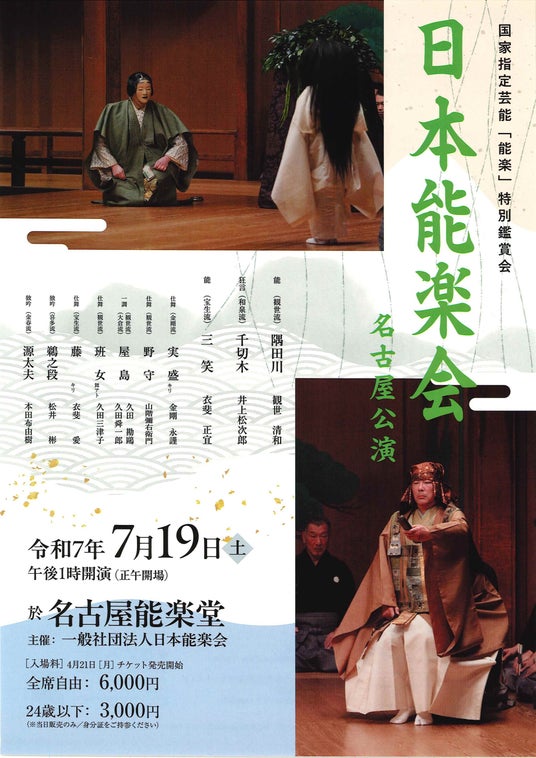 国家指定芸能「能楽」特別鑑賞会 日本能楽会・名古屋公演公演期間:2025年7月19日 (土)