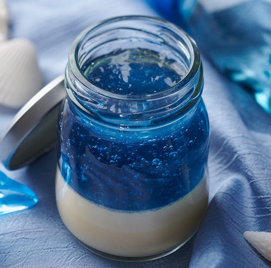 【沼津深海プリン工房】深海プリン(静岡)見た目のインパクトはどこにも負けません。プリンの上に鮮やかなブルーのジュレを載せました。下に行くにつれて徐々に暗くなっていく様子は正に深海の名にふさわしいものです。このジュレの正体はラムネ。清涼感溢れるラムネがプリンのまろやかさを一段と引き立て、食べてもしっかり美味しい逸品に仕上がりました。