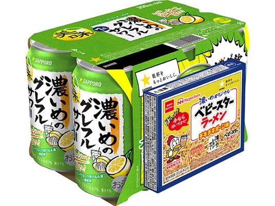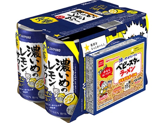 サッポロホールディングス(株)のグループ企業であるサッポロビール(株)は「サッポロ 濃いめ」ブランドのオリジナル景品付き企画商品を4月22日(火)に数量限定で発売します。「サッポロ 濃いめ」ブランドRTD(注1)6缶パックには、オリジナル チキチキボーン味ベビースター、RTS(注2)には、オリジナルマドラーを提供します。