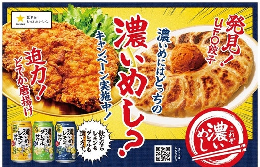 本キャンペーンは、お買い上げレシートで応募していただくと、『どでか唐揚げ』もしくは『UFO餃子』&『濃いめしグラス』のセットを合わせて510(濃い)名様にプレゼント。ムロツヨシさん出演CMのキャッチコピーである「濃い方で!」にちなみ、濃いめのレモンサワー・濃いめのグレフルサワーに合う、味が濃くインパクトのある「濃いめし」をご提案します。