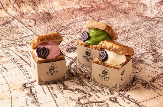 あわせて、海賊の世界を表現して装いを新たにした元箱根港の構内には、ビクトリー運航再開前日の4月25日(金)に、スタンドカフェ「PIRATE'S GALLEY(パイレーツ・ギャレー)」がオープンします。テイクアウト可能な海賊の宝箱のような四角いパイシューやオリジナルのカフェメニューをご用意し、店内では出航までのひと時を寛いでお過しいただけるよう芦ノ湖に面したカウンター席を設けます。