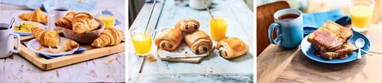 写真は左から「クロワッサン」「パン・オ・ショコラ」「ブリオッシュのフレンチトースト」