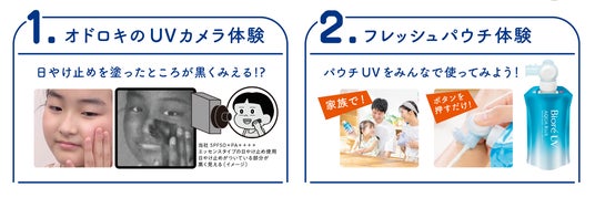 本取り組みでは、家族でシェアできるパウチタイプの日やけ止め「フレッシュパウチ」など紫外線対策商品の試用体験、目には見えないUV塗膜を可視化させた花王独自のUVカメラ体験、商品サンプリングを実施。体験を通して、家族で楽しく続けられる「紫外線対策習慣」を提案していきます。