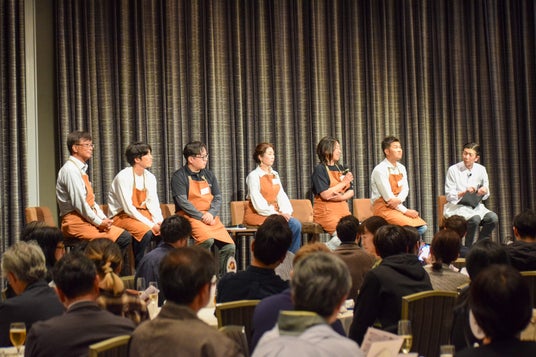 新しい試みとして、食事開始前に20分程のトークセッションを開催。「東三河フードバレー構想の未来」というテーマについて、生産者と今里で東三河の食と農について熱いトークを展開しました。