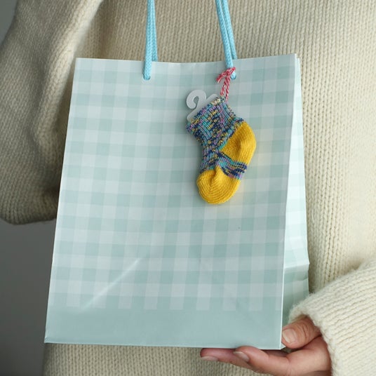 「プチックスfumifumi」は、創喜の靴下職人の遊び心から開発された極小サイズの靴下「プチックス」にぴったり収まる靴下型のメッセージカードです。上部がフック型のカードを「プチックス」に差し込むと、まるで売り場で販売されている靴下のミニチュアのように見えるデザインにしました。つま先(TOE)には「TO YOU」をもじった「TOE YOU(トゥー・ユー)」の文字を印字しています。カードには「ありがとう」や「がんばってね」などの短い文(ふみ)を手書きで添え、「プチックス」を履かせると、ふっくらと編みあげた靴下の質感が、メッセージの想いをやさしく包み込みます。紐が付いているため、ギフトラッピングに直接結び付けることも可能です。贈る相手への気持ちに温かみを添えるアイテムとして、日常からお祝い事など幅広いシーンで活用できます。