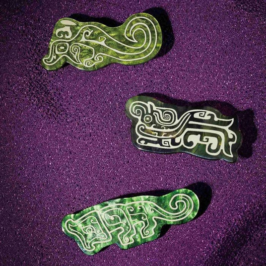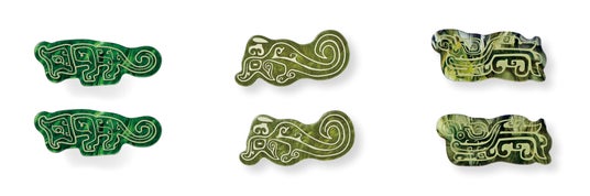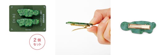 青銅器に描かれたユニークな動物文様がモチーフのマルチクリップです。ベースのプレートにはつややかなマーブルグリーンを使用。古代の人々の祈りが込められた動物文様が、悠久の時を超えてふだん使いで楽しめるクリップになっています。