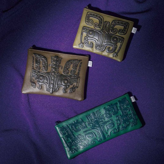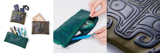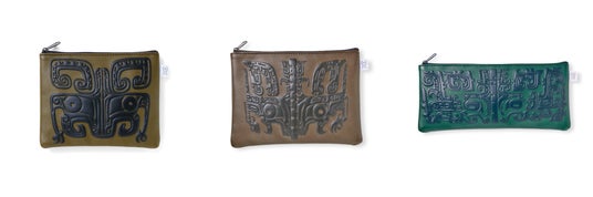 中国青銅器に見られる緻密な文様「饕餮文(とうてつもん)」が、凹凸感もそっくりに表面にほどこされているポーチです。伝説上の怪獣「饕餮」は、欲深く人間に害をなす凶悪な獣と文献に記されています。古代中国の人々が、あえて饕餮をあらわした青銅器を持つことで、邪なるものを退けようとしていたように、最強の怪獣ポーチを持ち歩けば、日々のお守りにもなりそうです。