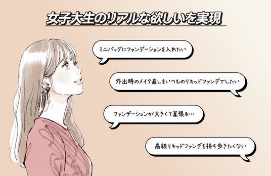 本製品は、19~22歳の女子大学生527人へのインタビューを通じて、「こんなアイテムが欲しかった!」という声をもとに開発されました。