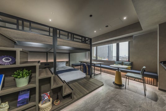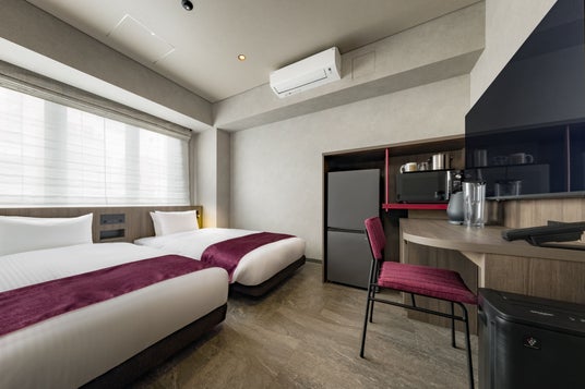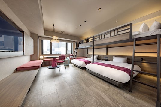 客室は、「大阪長屋」や「隠れ家」をキーワードに、全9タイプをデザイン。うらなんばの路地裏を彷彿とさせる情緒ある空間に、「えん」(えんじ色)と「りら」(薄紫色)の2つのテーマカラーを採用し、部屋ごとに異なるコンセプトをお楽しみいただけます。
