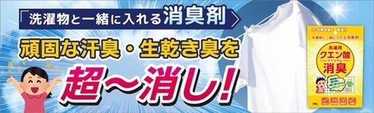 通常のクエン酸とは違う?クエン酸のいいとこ取り! 新商品クエン酸ナトリウムを使って洗濯のお悩みNo1の「汗の匂い」「生乾き臭」を強力消臭!