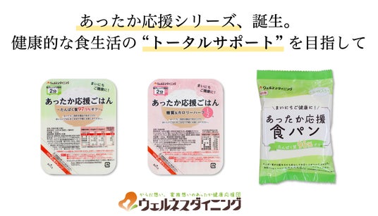 ウェルネスダイニング株式会社(本社:東京都墨田区錦糸/代表取締役:中本哲宏)は、食事制限を必要とされる方の「主食の悩み」を解決する新シリーズ『あったか応援ごはん』&『あったか応援食パン』 を販売開始いたしました。これまで冷凍宅配食を通じて食生活を支えてきた当社が、新たに「主食」の分野で毎日の食事を更にアップデートします。