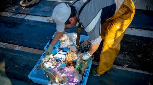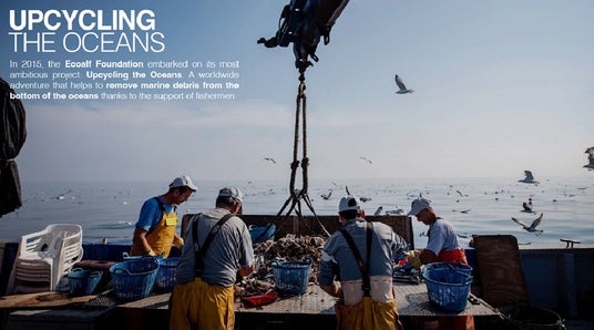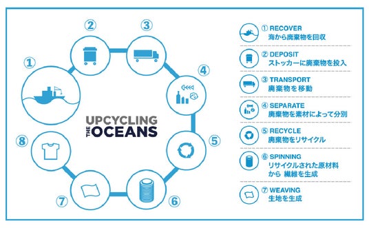 海洋ゴミを回収し新たな製品に活用するプロジェクト「UPCYCLING THE OCEANS」の様子