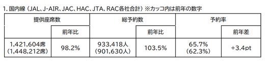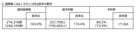 詳細につきましては、添付別紙JALグループ各社ご予約状況をご覧ください。