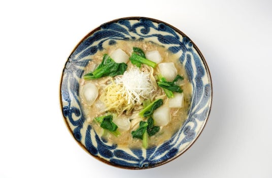 ミシュランシェフも愛用する希少なブランド鴨「七谷鴨」を贅沢に使用。旨みたっぷりの鴨出汁と、数種類の白湯スープをブレンドした極上の味わいが特長です。