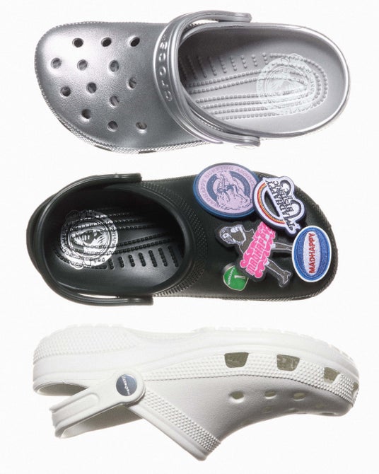 さらに、Crocsとのコラボレーションでは、クラシッククロッグのシルエットを採用し、ホワイト、ブラック、クロームの3色を展開。カスタマイズ可能な仕様となっており、MadhappyとHYSTERIC GLAMOURがデザインした限定Jibbitz(TM)パックが付属します。